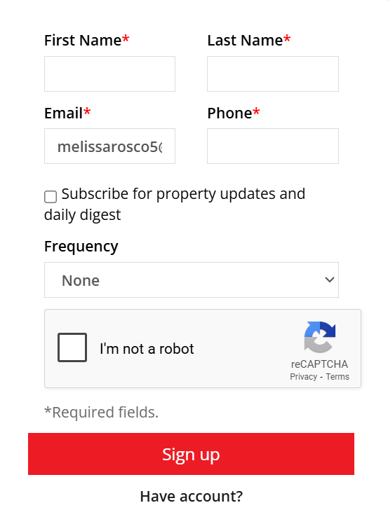 Buyers will then be prompted to enter their login information (or register if they are new). From here, they can choose to subscribe to property alerts and select their preferred alert frequency (e.g., daily, weekly).