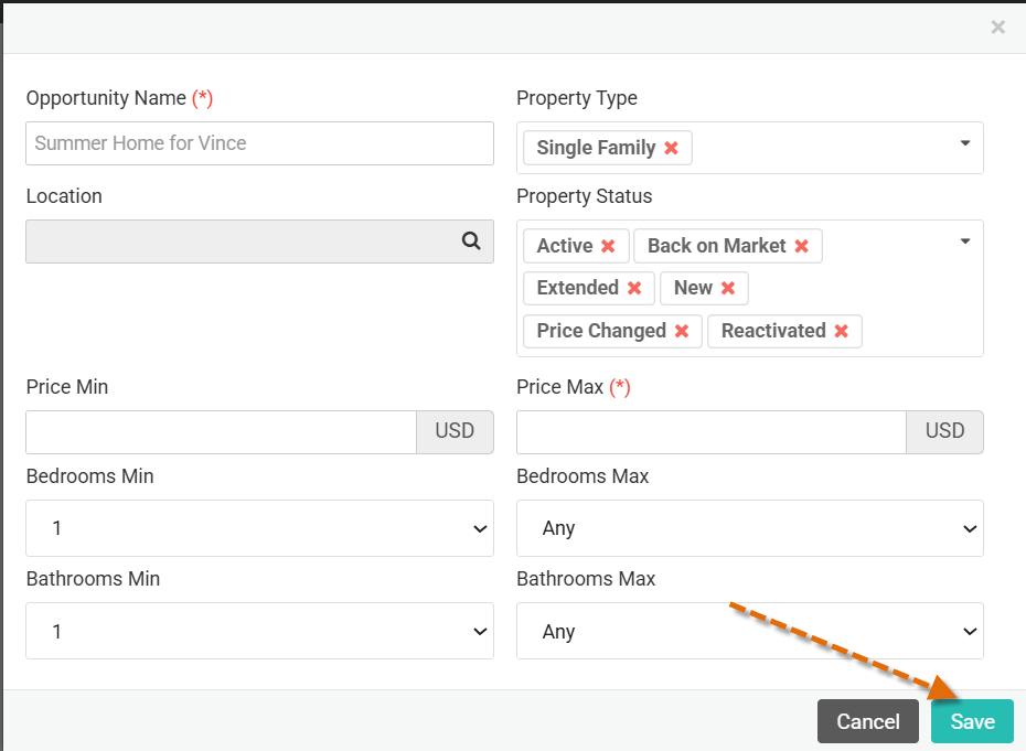 - Complete the criteria for their ideal home: location, price range, number of bedrooms/bathrooms, property type (single-family, condo, land), and any other specific preferences. The more detailed you are, the more relevant the alerts will be!