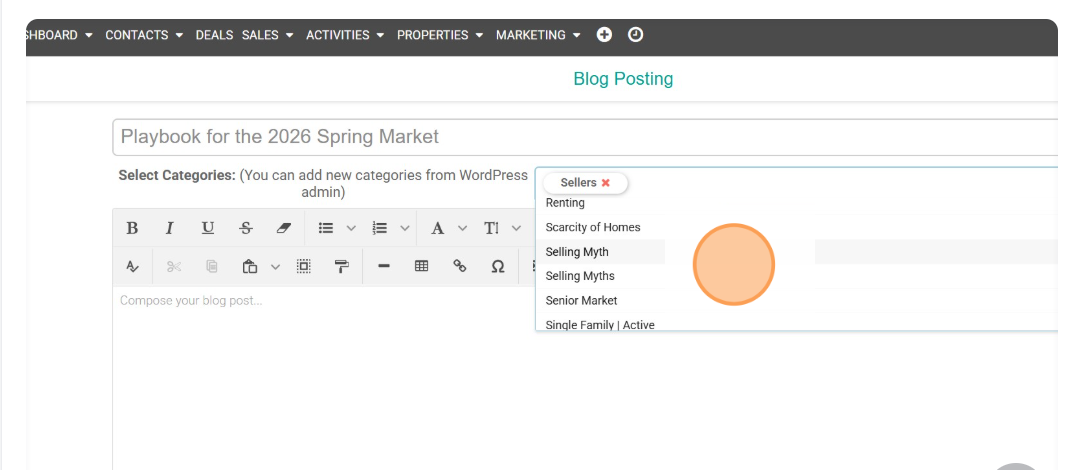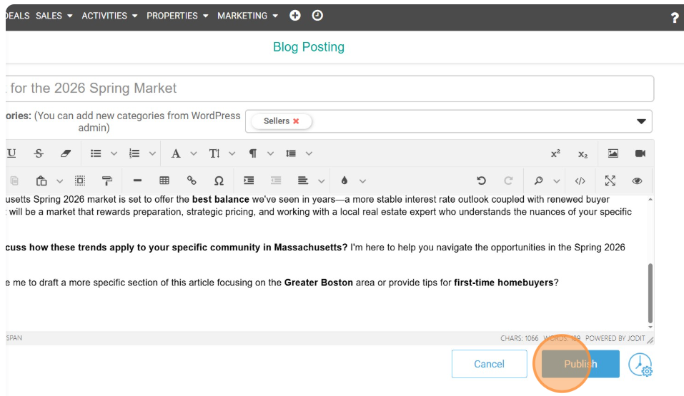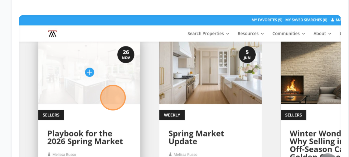 Navigate to your website's blog section to see the final blog post. The post will display with its title, category, and thumbnail image, such as "Playbook for the 2026 Spring Market" under the "SELLERS" category.