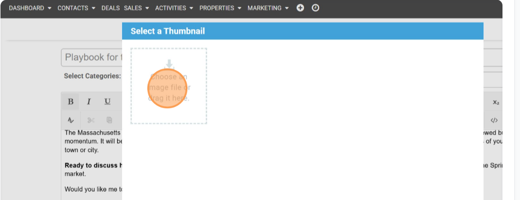 Click "Choose an image file or drag it here" to add a photo to your blog post.