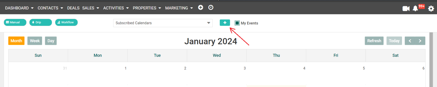 Step-1 : Go to Calendar under Activities menu and click on to (+) button beside "Subscribed Calendars".
