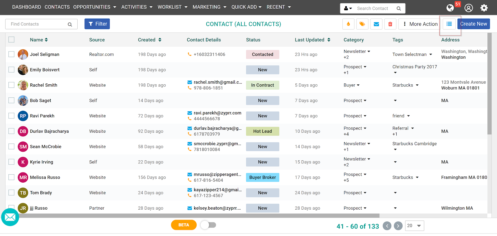 Need to add someone new? Click the Create New button in the top right corner to manually add a single contact to your database.