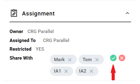 Step 04: Now you will find those users on the left side widget under Assignment dropdown. Click on the tick to save it.